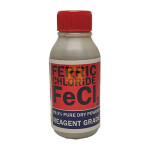 This bottle contains 100g of pure reagent grade ferric chloride (FeCl3) which is an orange to brown-black solid that is soluble in water. It is widely used as an etching agent for manufacturing PCB (Printed Circuit Boards) for hobbyists. With 100g of Ferric Chloride power, you can make 400ml of etchant (1:4 w:v ratio). If you need to fast results, you can increase the ratio.