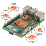 This 4pcs/bag pure copper heatsinks kit with thermal conductive adhesive is for Raspberry Pi 5 8GB/4GB/2GB/1GB computer. The copper heatsinks can be used as CPU cooler, CPU heatsink to help heat dissipation. You can use these copper heatisnk coolers for Raspberry Pi 5.