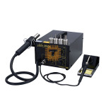 - 2-in-1 station: soldering iron + hot air rework gun